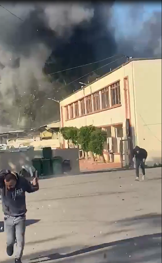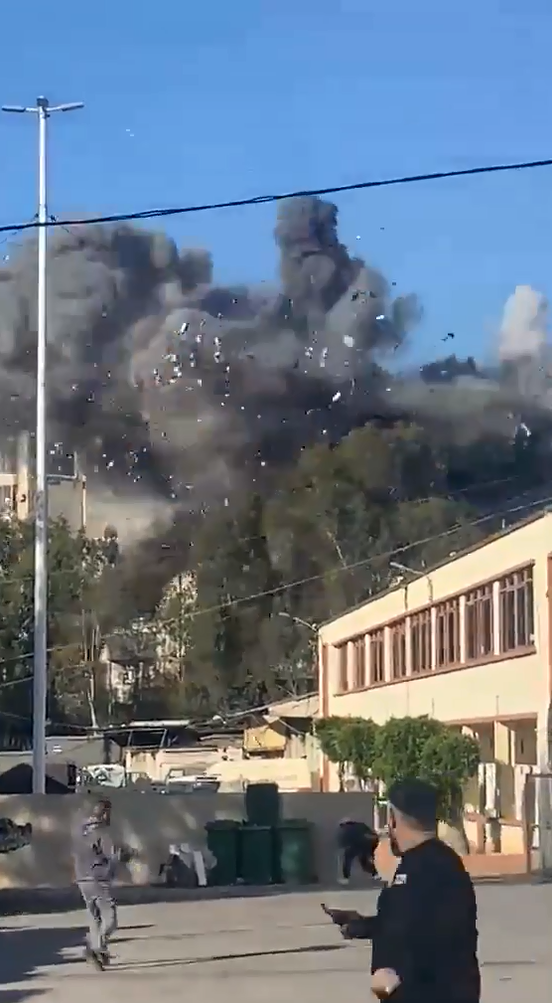 Testigos en la zona señalaron que tras la evacuación se produjo el ataque que provocó el colapso total del edificio, generando una densa columna de humo y daños en estructuras cercanas.