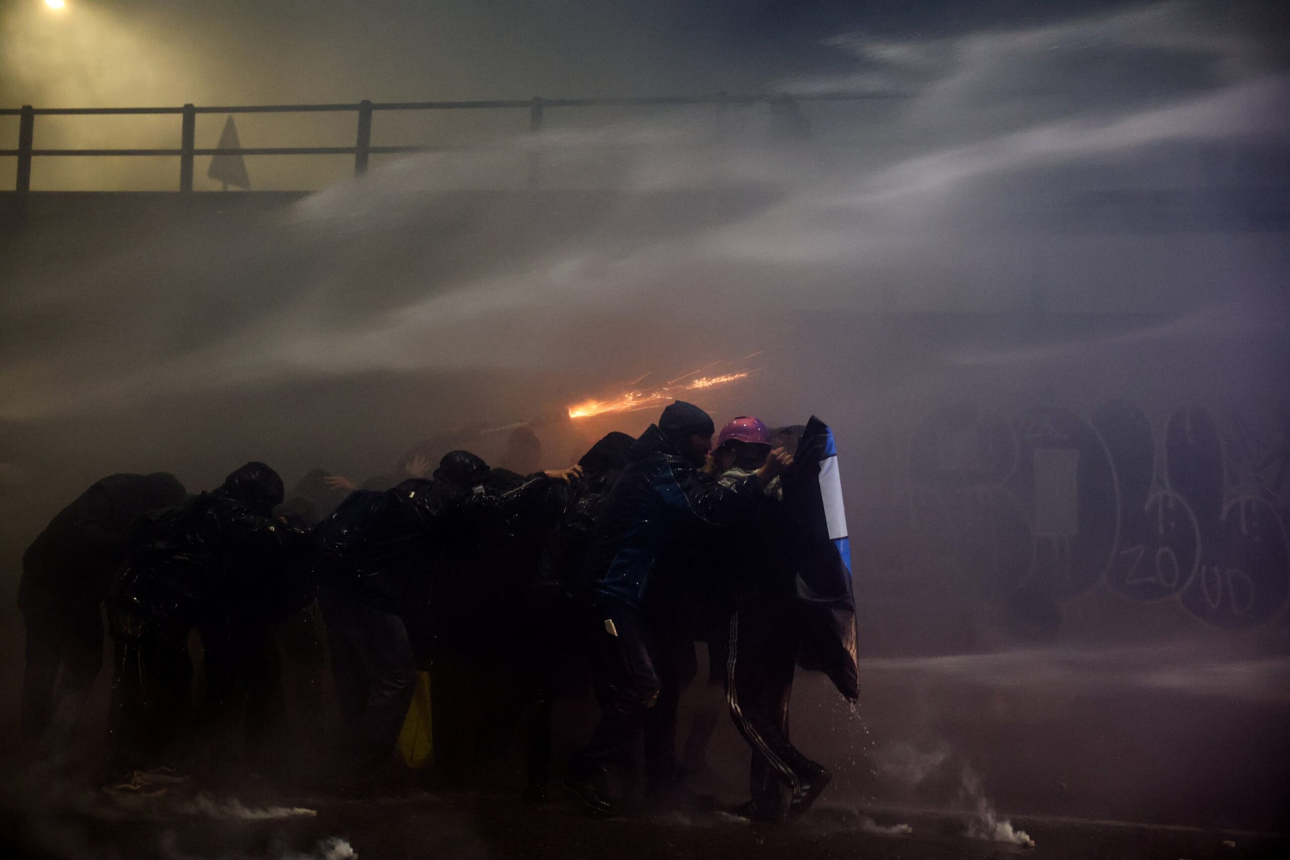 La policía utilizó cañones de agua para dispersar a los manifestantes.