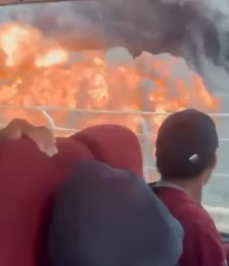 Testigos relataron que el fuego avanzaba con rapidez, dando la impresión de que podría alcanzar al transporte en cuestión de segundos.