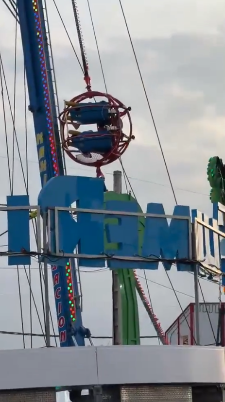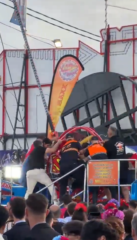 El incidente ocurrió en el sector conocido como la Calle del Infierno, donde se concentran los juegos mecánicos. La atracción involucrada, llamada “Tirachinas”, sufrió un desperfecto justo en el momento del lanzamiento, lo que provocó que parte del sistema quedara fuera de su posición habitual.