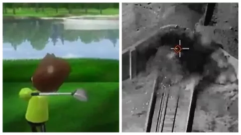 El material audiovisual mezcla imágenes reales de bombardeos con gráficos y sonidos inspirados en el videojuego de Nintendo. La edición recrea la interfaz típica del juego, mostrando personajes estilo “Mii” participando en actividades deportivas como tenis, golf o tiro con arco.