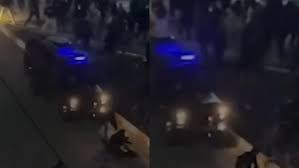 En las grabaciones se aprecia cómo un vehículo oficial avanza entre la multitud.